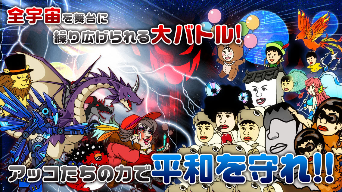宇宙旅行に出かけたアッコさんが目にしたものは、なんと自分と同じ顔をした様々なアッコ達だった!宇宙にはびこる巨悪を相手に、奇天烈・キモカワアッコの群集を引き連れ、爽快バトルで平和を勝ち取れ!
